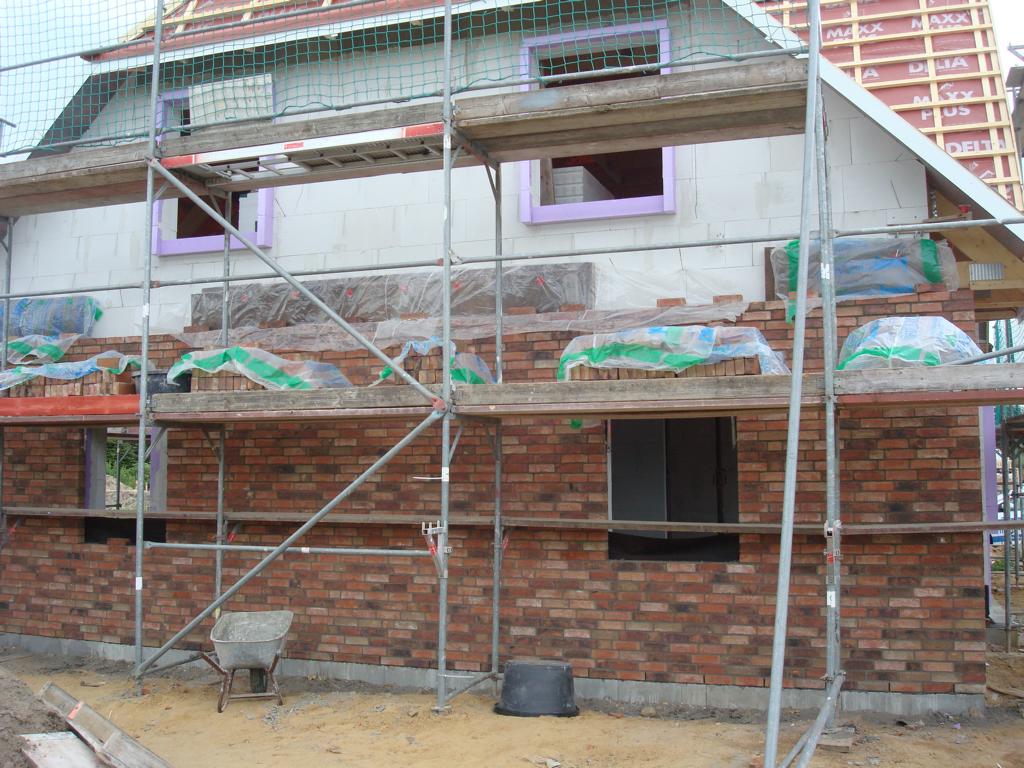 Nach dem unsere Steine aus Belgien angeliefert wurden, haben heute die Maurer mit dem Verblenden angefangen.