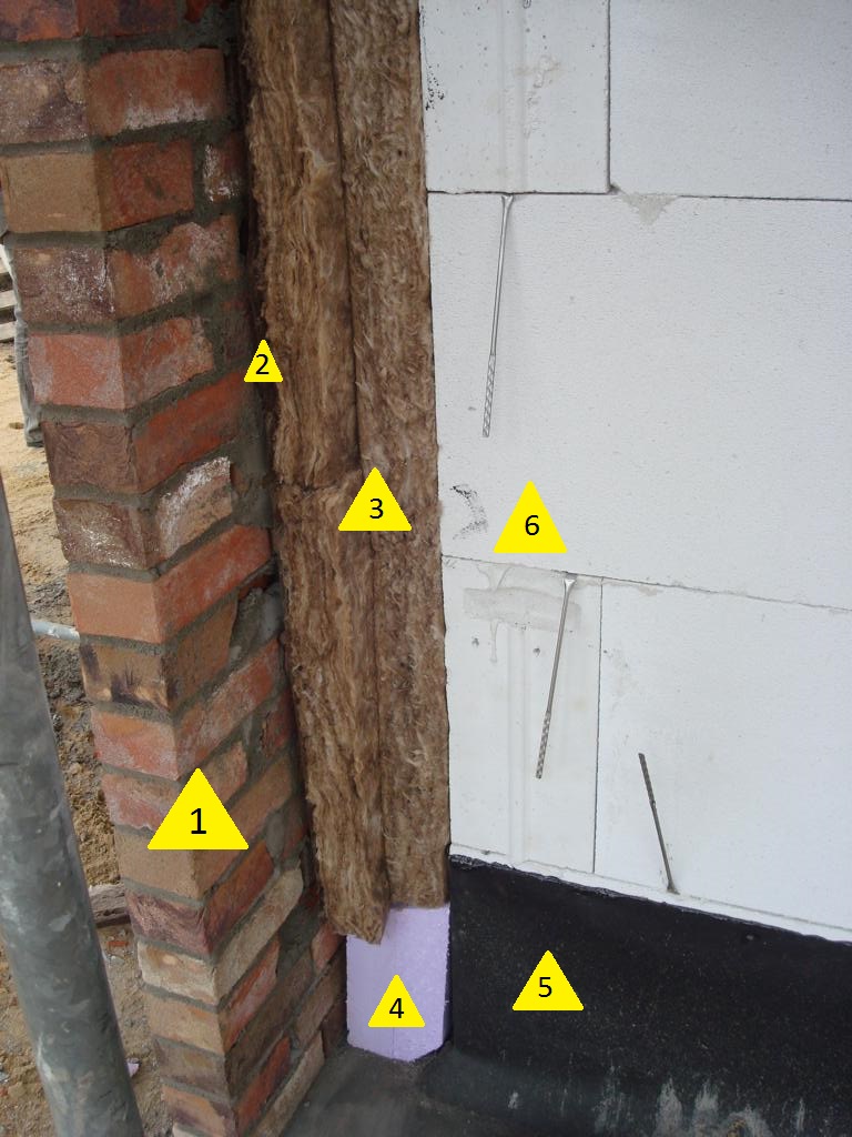 Aufbau einer Verblendfassade im Querschnitt (am Objekt)