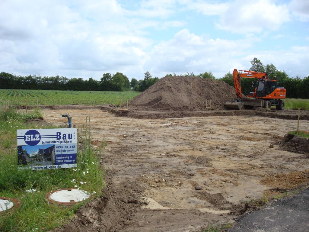 Es wurde fast das ganze Grundstück mit Füllsand ausgetauscht. Für Haus, Carport, Auffahrt und Terrasse.